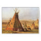 Teepees on the Plain (1833) by Karl Bodmer is a vintage American West fine art daily life scene painting. A Native American Indian tribe on the prairie living in a village of tipis.