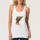I had purchased the flowy tank for another graphic so I knew it would fit. Nice light fabric, perfect for summer, doesn't cling. The white can be a little shear, you can definitely see your bra through it so if that bothers you, go for a darker color. I have worn this out during the day, and at the gym. The colors are washed out. The blue is more of a pale light blue as compared with the graphic displayed on the website. I would have liked the colors a little more saturated but still nice.