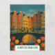 Capture the timeless beauty of Amsterdam with this vintage-style travel postcard. The design features a peaceful canal lined with historic Dutch townhouses and a charming bridge adorned with bicycles and flowers. Perfect for collectors or travel lovers, this postcard evokes the nostalgic charm of classic European journeys.