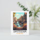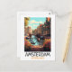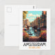 Colourful Amsterdam Netherlands painting on a postcard that is showcasing the famous canals of the dutch capital Amsterdam, Holland and the unique building structure. This product makes an amazing travel souvenir and gift idea for every tourist and visitor of the european travel destination. Make it your own and purchase now.