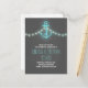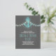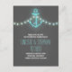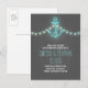 Romantic nautical save the date postcard with vintage anchor, turquoise blue string lights and chalkboard background. Perfect save the date for nautical, beach and destination weddings