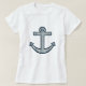 A blue and cream striped anchor gives this t-shirt vintage, nautical style. The design is from original art.