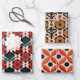Red, Orange and Black Vintage and Folk Pattern Wrapping Paper Sheets Set