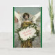 Sweet, vintage picture of an Angel holding a sign, is featured on this Christmas greeting card. The front of this card reads, "Christmas Greetings" and inside of the card reads, "May your heart be filled with joy, as you and your family celebrate the birth of the baby, Jesus. May God's peace fill your home too. A Blessed and Merry Christmas to you". A lovely card to send family and friends for Christmas!