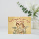 The look of parchment watercolored paper printed with a vintage angelic duo singing "Merry Christmas" greetings in Magyar, the Hungarian language. Burgundy watercolor brush lettering says "'Kellemes karácsonyi ünnepeket".