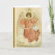 A beautiful angel with a string of pink, orange, and yellow roses and text that reads "Merry Christmas" on vintage style angel greeting cards that you can customise.