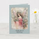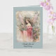 This stunning vintage angel greeting card features a beautiful angel with long brown wavy hair, dressed in a pastel rose-coloured gown, surrounded by a lush garden of pink roses. The card is perfect for any occasion, with the option to customise the front message to say "Happy Birthday," "Thinking Of You," or any caption you desire. The inside of the card can also be personalised to include your own heartfelt message.