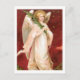 A Victorian postcard for the holiday season, picturing an angel with blonde hair and a halo on a red background with gold stars. Digitally restored from a vintage postcard.
