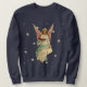 A vintage angel holding a red book and carrying a scroll, surrounded by a random pattern of stars, makes a beautiful holiday Sweatshirt.
