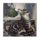 Vintage Animals, Cute Tabby Cat snd Butterfly Tile