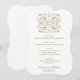 Elegant and formal wedding dinner menu cards feature decorative swirls and flourishes that frame the vintage inspired design. White and antique gold colours. Personalise with the bride and groom names, event date, and menu details.