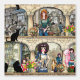 Anton Pieck's art about old Amsterdam market painting AI generated with some modern models and black cats to make it a one-off design