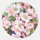 Featuring a vintage painting illustration of dark pink and white apple blossoms on a branch.