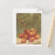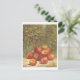 This postcard is a reproduction of a vintage lithograph showing red apples in a field in the fall/autumn.