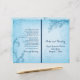 Vintage aqua blue scroll leaf wedding ceremony and party booklet style folded program, featuring elegant floral leaf scrolls in blue on aqua and turquoise grunge background. This elegant template design with vintage elements is perfect for the modern bride of today. It is part of a wedding collection or set and is fully customisable. Great for a summer wedding. You will have to fold it in the centre. Choose only this type of paper-value as it folds well.