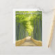 Find your tranquillity with this serene Arashiyama Bamboo Grove Japan travel postcard! This captivating illustrated design captures the famous pathway winding through the dense, towering bamboo stalks of the Arashiyama Bamboo Forest in Kyoto, Japan. The stylised art beautifully depicts the light filtering through the canopy, creating a truly unique and calming atmosphere.