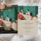 Set a sophisticated tone for your wedding dinner with this vintage Art Deco-inspired menu card. The front showcases a stylish dinner scene from the 1920s, featuring elegantly dressed guests at a formal table, framed by soft lighting and a rich, moody colour palette of teal, coral, and cream. This design captures the charm and glamour of a bygone era, perfect for a vintage-themed or Gatsby-inspired wedding. The back lists the delicious courses with refined typography, completing a classic and memorable look. Ideal for couples looking to add a touch of nostalgia and elegance to their wedding decor.