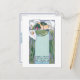 Artistic Art Nouveau style Easter verse with calla lilies and peaceful rural scene round inset with teal and gray background.