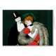 Vintage illustration Art Nouveau advertising poster design for Novita per Signora, E. & A. Mele & Ci. by Leonetto Capiello, 1903. This advertisement features a fashionable love and romance image with an elegant Victorian couple. The gentleman is wearing a dapper tuxedo and top hat and the lady is wearing a beautiful, elegant red formal evening gown with a fancy feather boa and a sophisticated feathered hat. Novita per Signora translates to "new fashion for women" and was produced for the Italian department store Mele & Ci.