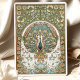 This breathtaking wedding invitation showcases an exquisite Art Nouveau peacock motif, radiating opulence, elegance, and natural beauty. The front design features a majestic peacock with an intricate, gold-accented tail, blooming into stylised floral elements in soft sage green, muted teal, antique gold, and blush pink. Inspired by historic European craftsmanship and the iconic works of Alphonse Mucha, this design embodies a romantic and timeless aesthetic.