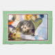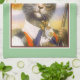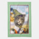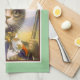 This beautiful vintage kitchen towel for cat lovers and cat owners features the wonderful whimsical work of famous German artist Arthur Thiele. The painting on oilette is of a handsome brown tabby cat with green eyes dressed in his Sunday best for a day's stroll in the Bavarian Alps. He's wearing a green peaked hat decorated with daisies and traditional lederhosen. In one paw is a decorative pipe and the other holds a walking staff. He's painted against a soft blue sky with rolling hills in the background. The kitchen towel would be the perfect gift for admirers of vintage cat art. You can change the colour of the soft green background border to suit simply by using the customise button.