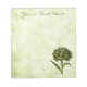 Vintage drawing of a globe artichoke in shades of green. Distressed green background. Beautiful gift for anyone who loves Mediterranean food, artichokes or cooking.