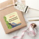 Based on vintage crate art, an editable recipe sticker with retro artichokes floating to one side of a choppy ocean, reading "From the Kitchen Of" in green block letters, room for our name in red script and brown bold letters for your recipe name.