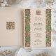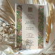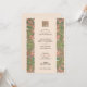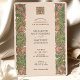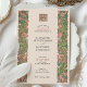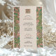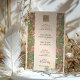 This charming wedding invitation draws from the Arts & Crafts movement with its beautifully stylised floral borders and symmetrical composition. The design features flowing pink, coral, and green blossoms with leafy flourishes, creating a rich tapestry of natural forms along both sides of the card. The elegant typography is centred within a soft blush background, topped with a matching floral monogram emblem on both front and back. Ideal for nature-loving couples, vintage weddings, or those inspired by William Morris and early 20th-century design. Personalise this unique invitation to reflect your own romantic aesthetic.