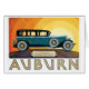 Vintage Auburn Motors advertisement with a cubistic sunburst illustration in the background. From the Auburn Automobie Company, Auburn, Indiana. Touted as "The Greatest Straight Eight"