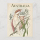 A beautiful illustration of two Australian galahs (aka pink and grey cockatoo) sitting on branches in a gum tree that has green leaves.