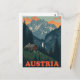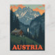 Bring the breathtaking beauty of the Austrian Alps to your home with this vintage-style magnet. It features a stunning illustration of a cosy mountain cabin nestled in a lush valley with snow-capped peaks and a waterfall in the background. This magnet is a perfect souvenir for anyone who loves Austria's majestic landscapes and outdoor adventures. It's a great keepsake to remember a trip or a gift for a friend who dreams of travelling.