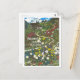 This postcard is a reproduction of a vintage travel poster for Austria featuring a mountainside covered in flowers.