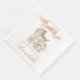 These old fashioned, retro style baby shower napkins feature a cute watercolor style illustration. A vintage baby carriage is printed in the centre with a little stuffed bunny in front. A pink ribbon banner at the top announces a baby girl, followed by the shower or party information at the bottom. A sample name is printed across the bottom which you can personalise to include your own custom name or text.