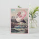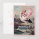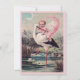 Vintage postcard illustration of a girl riding on a stork. Quote from David Thoreau.