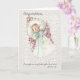 This is a darling custom designed image of a precious baby girl holding a rosary with pink roses and a lace background. A scripture verse is below.