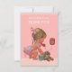 Elegant custom personalised vintage girl baby shower thank you card template for baby girls with a beautiful vintage illustration of a cute and adorable baby girl with stylish pink diaper and a pink bow in her hair with trailing ribbons. She is ringing you on an old red retro telephone to say thank you! She is holding a little suitcase and her quirky teddy bear is leaning against it - she's all packed up and ready for her arrival!! The background is a pretty pink with a classy pink chevrons border. Chic, trendy, glamourous, girly, fun, fashionable, whimsical, affordable personalised / personalised custom baby shower thank yous templates for baby girls. Decorated on both sides. The back / reverse side has the same design. Hand write your personal message on the back. Double sided printing / front and back. If you need any assistance customising your product please contact me through my store and I will be happy to help. PLEASE NOTE:- All invitations on Zazzle have flat printed images.