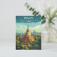 Journey into history with this enchanting Bagan Myanmar travel postcard! This captivating illustrated design transports you to the vast plains of the Bagan Archaeological Zone, showcasing the mesmerising landscape dotted with thousands of ancient temples and pagodas.