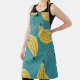 Vintage banana pattern, blue background. apron