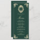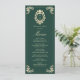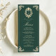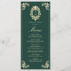 Elegant wedding menu card in emerald green with ornate baroque gold flourishes and a regal Victorian monogram at the top. This luxurious design provides space to showcase your wedding dinner courses in a formal and sophisticated layout. Perfectly coordinates with the emerald green and gold baroque wedding invitation suite, ideal for couples planning a classic, elegant, and timeless celebration.