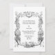 Very ornate antique Baroque Rococo wedding invitations featuring floral garlands, birds, cherubs and two flaming hearts bound with a floral wreath. You can easily edit the text and change the background colour in this design template.