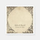 Elevate your gothic wedding with a Victorian-inspired wedding cocktail napkins that exudes timeless elegance and mystery. Designed to resemble an antique book binding, this stunning design features intricate a black lacey filigree on an aged tan parchment background, evoking the charm of a bygone era. Let your love story unfold with a table number card as unforgettable as your day. Created by Simply Farmhouse Press.