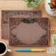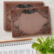 Elevate your gothic wedding with a Victorian-inspired wedding invitation envelope that exudes timeless elegance and mystery. Designed to resemble an antique book binding, this stunning design features intricate a black lacey filigree on a vintage, distressed rust background, evoking the charm of a bygone era and adding a touch of dark romance, perfect for setting the tone for your unique celebration. A bat with its wings spread sits at the pinnacle of the design, adding spooky flair. Let your love story unfold with a design as unforgettable as your day. Created by Simply Farmhouse Press.