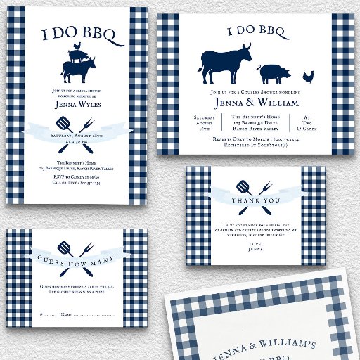 Vintage BBQ Navy Blue Gingham Wedding Seating Card