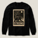 This striking vintage-style illustration showcases a powerful bear walking through grass beneath a night sky filled with stars and a glowing full moon. A leafless tree adds depth to the scene, enhancing the rugged and timeless aesthetic. Below the bear, the bold lettering of “STRONG” reinforces themes of resilience, courage, and inner strength. Perfect for merchandise such as prints, apparel, and accessories, this design appeals to nature lovers and those who embrace determination and endurance.