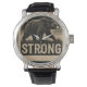 This striking vintage-style illustration showcases a powerful bear walking through grass beneath a night sky filled with stars and a glowing full moon. A leafless tree adds depth to the scene, enhancing the rugged and timeless aesthetic. Below the bear, the bold lettering of “STRONG” reinforces themes of resilience, courage, and inner strength. Perfect for merchandise such as prints, apparel, and accessories, this design appeals to nature lovers and those who embrace determination and endurance.