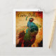 Vintage Beautiful Blue Peacock Floral French Postcard