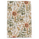 Vintage botanical design featuring detailed beige and green florals on a white background.