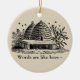 Ornament with vintage letterpress image of a beehive by Thomas Bewick. Colour and message can be personalised.