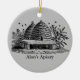 Ornament with vintage letterpress image of a beehive by Thomas Bewick. Colour and message can be personalised.