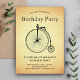 Invite your guests with this vintage birthday party invitation featuring a penny-farthing bicycle and elegant typography against a vintage parchment background. Simply add your event details on this easy-to-use template to make it a one-of-a-kind invitation.